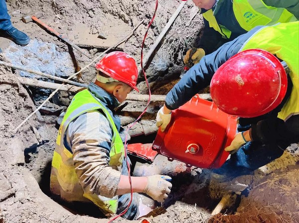 除了這些不利因素,當(dāng)天最低-6℃的氣溫同樣考驗(yàn)著搶修人員的體力和毅力。管線搶修人員在保證安全前提下開挖、切割、焊接,四五名搶修人員相互配合、爭(zhēng)分奪秒,最終在刺骨寒風(fēng)中奮戰(zhàn)十余個(gè)小時(shí),于當(dāng)晚十點(diǎn)半左右完成搶修工作,周圍居民恢復(fù)正常供水。