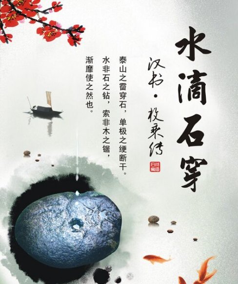 古人云:“水滴石穿,繩鋸木斷”。它是在告訴我們,無(wú)論做什么事情,更確切的說(shuō)無(wú)論做多困難的事情,只要保持堅(jiān)定不移的意志,持之以恒的精神,就一定能取得成功。