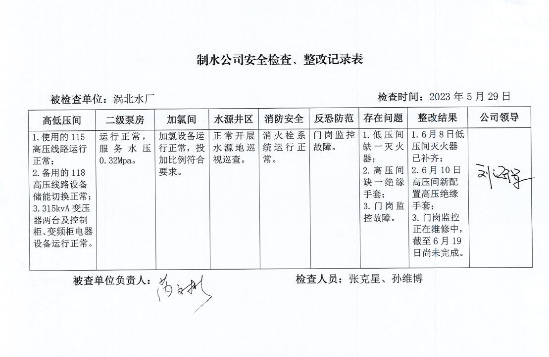 渦北水廠2023年5月安全生產(chǎn)檢查記錄