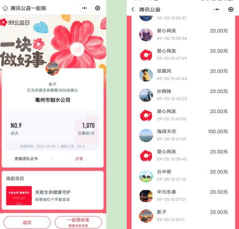 公司主要領導、職工們通過騰訊公益平臺紛紛伸出援助之手為項目進行捐款,截止8日公司共有50名職工參與捐款,共捐出愛心款項1070元。所捐款項已通過微信平臺騰訊公益進入安徽省紅十字基金會賬戶。