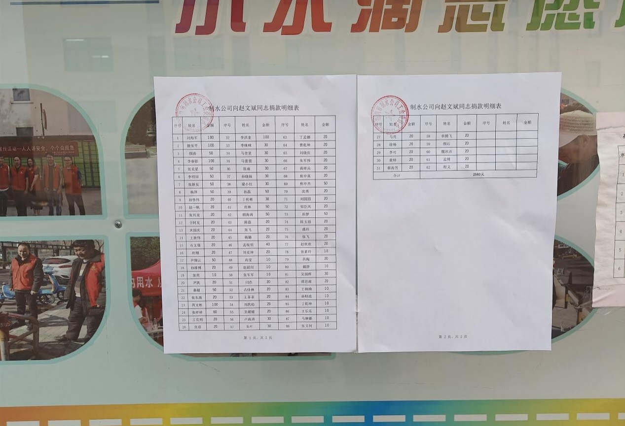 為響應(yīng)市城市管理局關(guān)于為譙城區(qū)城管局趙文斌同志不幸遭遇的愛心捐款號(hào)召,公司工會(huì)第一時(shí)間發(fā)出獻(xiàn)愛心捐款倡議,號(hào)召公司全體職工為趙文斌同志捐款,伸出援助之手,奉獻(xiàn)一片愛心。在了解到趙文斌同志的遭遇后,公司各單位、科室職工們紛紛伸出友愛之手,兩天時(shí)間共捐善款2560元,11月10日該筆捐款已轉(zhuǎn)至市城管局相關(guān)工作人員。