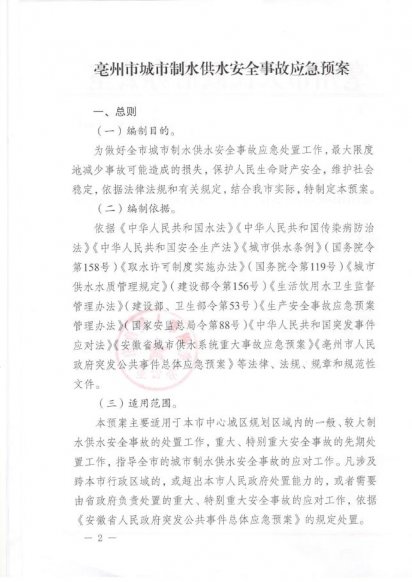 —關(guān)于印發(fā)亳州市城市制水供水安全事故應(yīng)急預(yù)案的通知