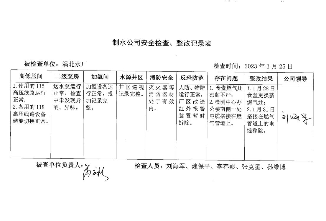 渦北水廠2024年1月安全生產(chǎn)檢查記錄