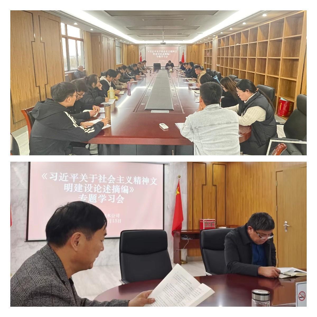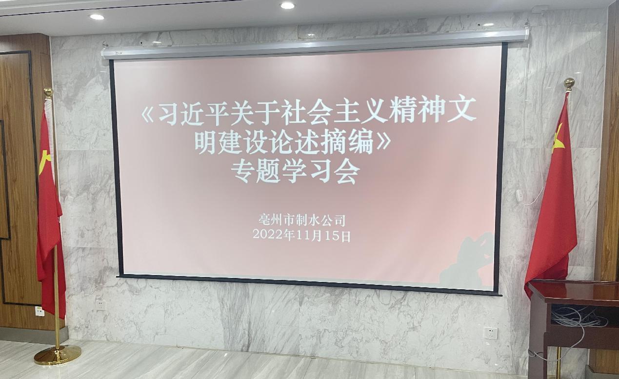 為深入學習貫徹習近平總書記關于精神文明建設的重要論述,高舉思想旗幟、突出價值引領,制水公司組織黨員干部、一線職工集體學習《習近平關于社會主義精神文明建設論述摘編》。
