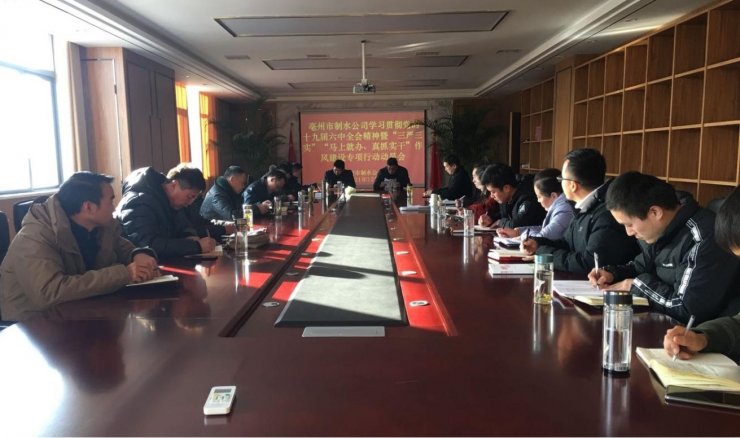 為做好黨的十九屆六中全會精神的學(xué)習(xí)宣傳貫徹,12月29日,亳州市制水公司黨支部召開學(xué)習(xí)貫徹黨的十九屆六中全會精神暨“三嚴(yán)三實(shí)”“馬上就辦、真抓實(shí)干”作風(fēng)建設(shè)專項(xiàng)行動動員會。